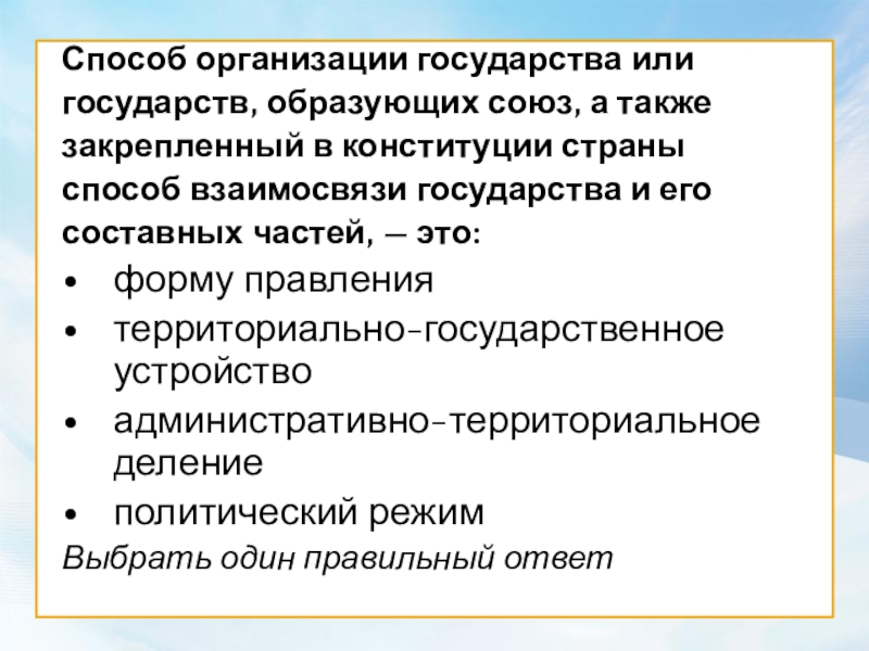 Слайд 18Форма государственного устройства