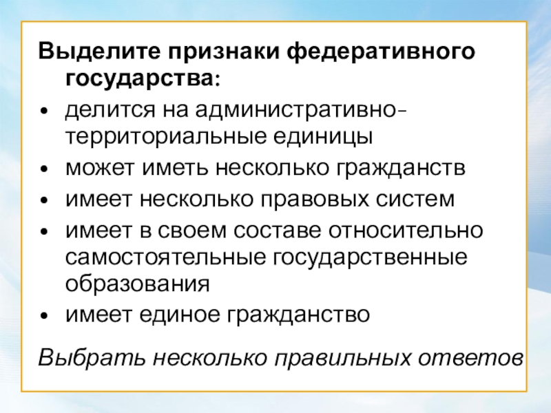 Выделите признаки федеративного государства: