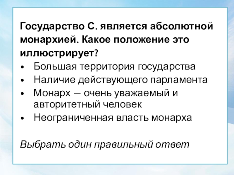 Государство С. является абсолютной