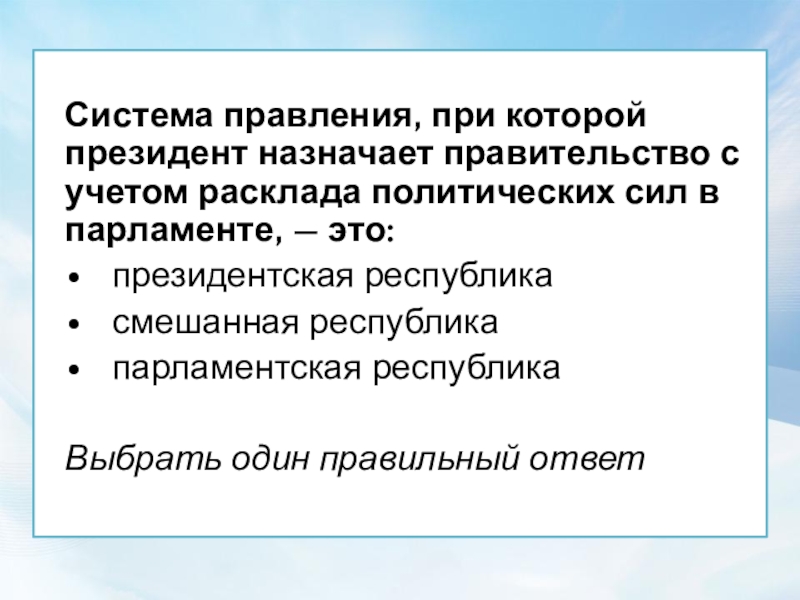 Система правления, при которой президент назначает правительство с учетом расклада политических