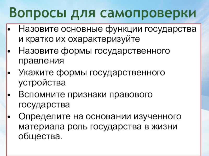 Назовите основные функции государства и кратко их охарактеризуйте