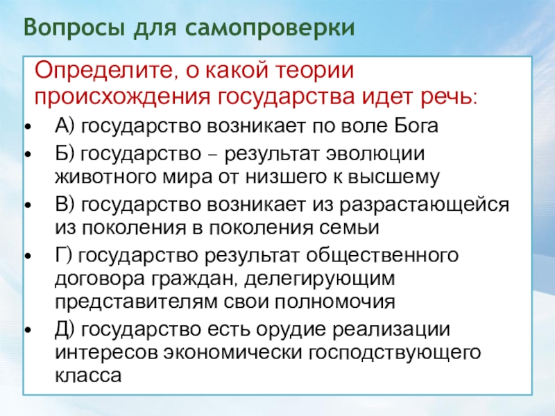 Слайд 13Теории происхождения государства