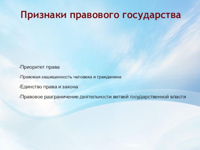 Вспомните признаки правового государства