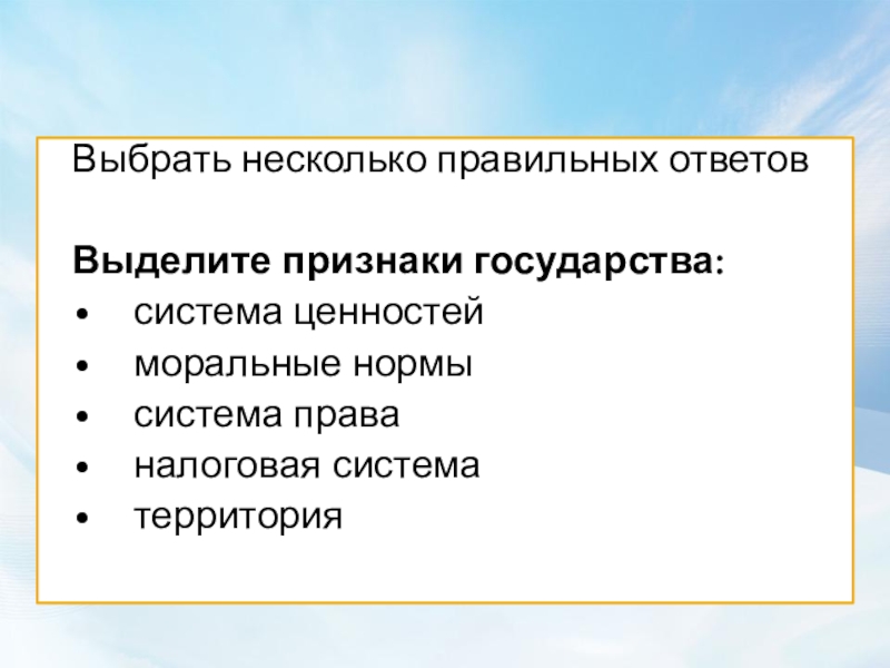Слайд 24Тест «Признаки и функции государства»