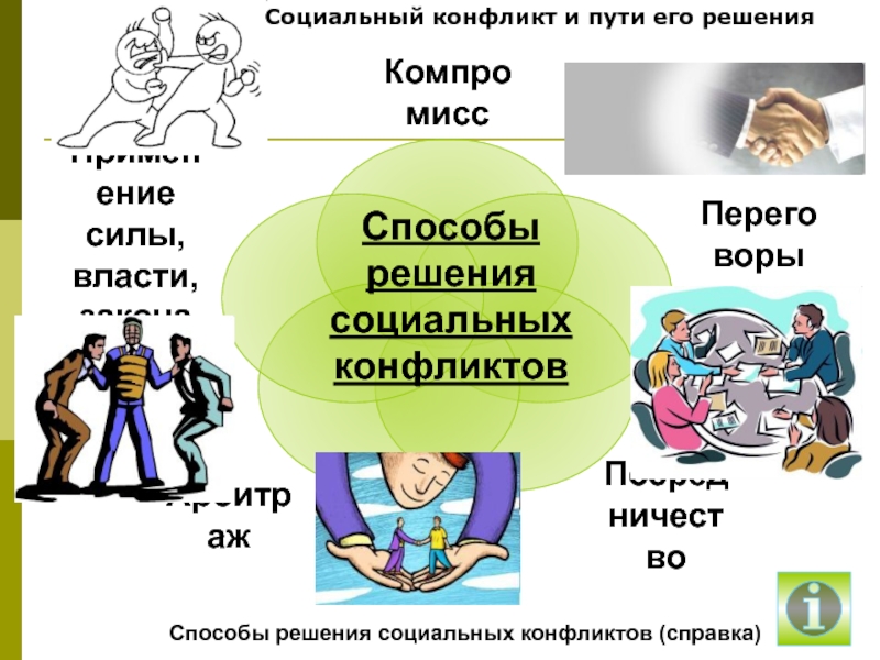 Способы решения социальных конфликтовСоциальный конфликт и пути его решенияСпособы решения социальных конфликтов (справка)