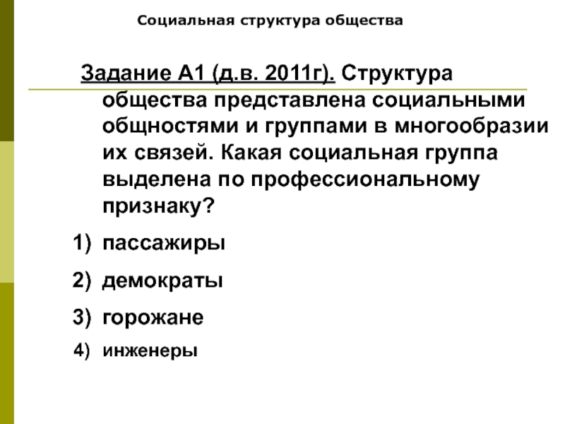 Задание А1 (д.в. 2011г). Структура общества представлена социальными общностями
