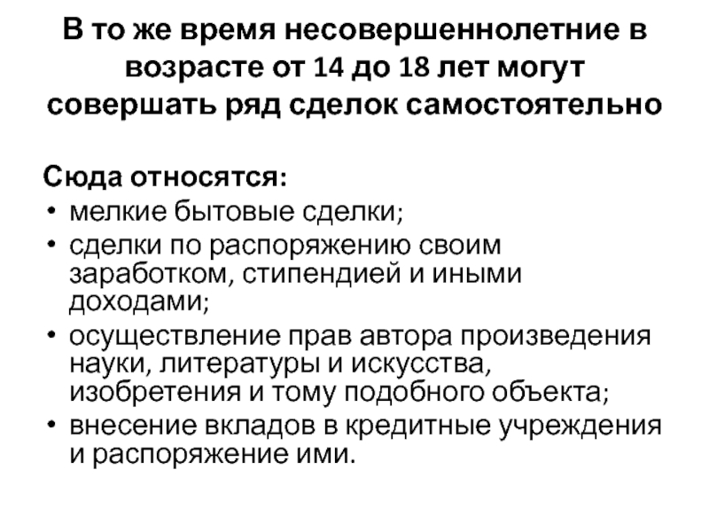 мелкие бытовые сделки;
