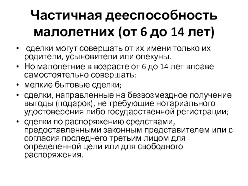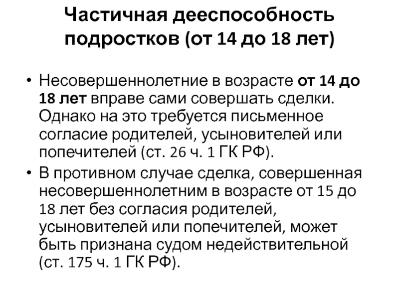 Частично дееспособными принято называть граждан, не достигших 18 лет, т. е. несовершеннолетних.