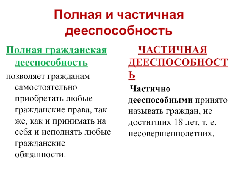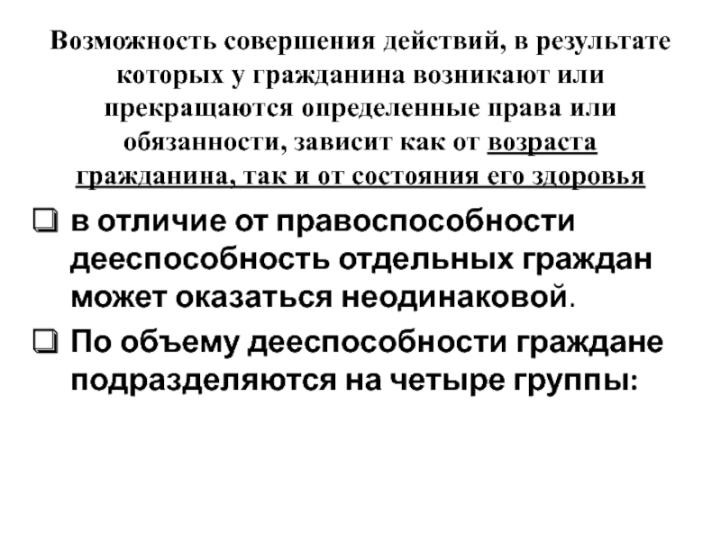 в отличие от правоспособности дееспособность отдельных граждан может оказаться неодинаковой.