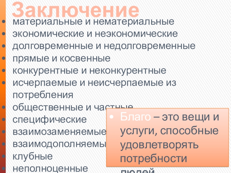 Благо – это вещи и услуги, способные удовлетворять потребности людей.