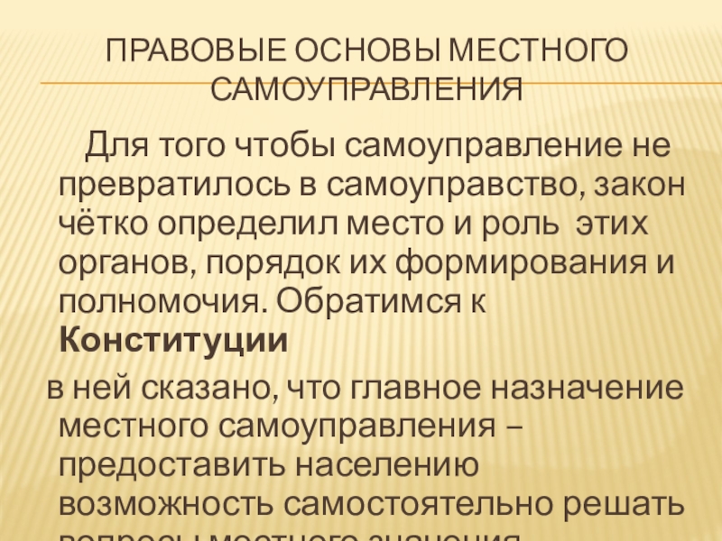 в ней сказано, что главное назначение местного самоуправления – предоставить населению возможность самостоятельно решать вопросы местного значения…