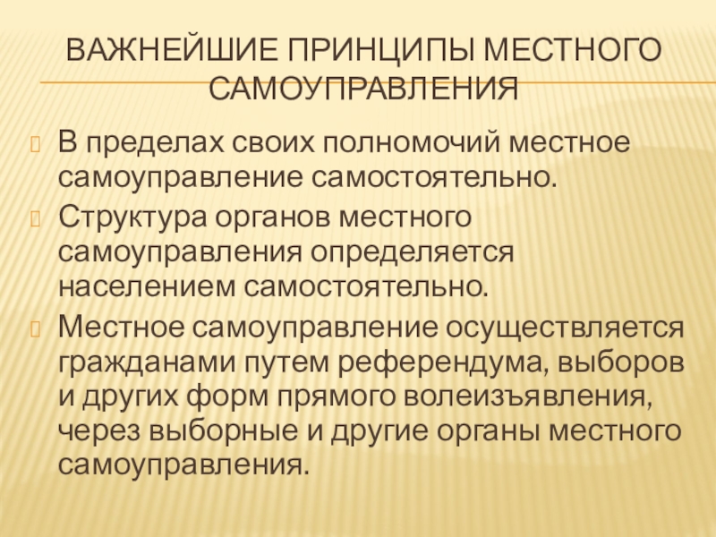 В пределах своих полномочий местное самоуправление самостоятельно.