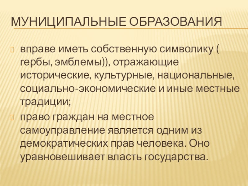 вправе иметь собственную символику ( гербы, эмблемы)), отражающие исторические, культурные,