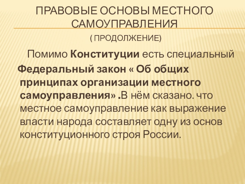 Слайд 25Федеральный закон « Об общих принципах организации местного самоуправления»