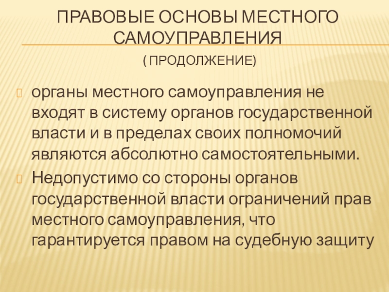 Недопустимо со стороны органов государственной власти ограничений прав местного самоуправления, что гарантируется правом на судебную защиту