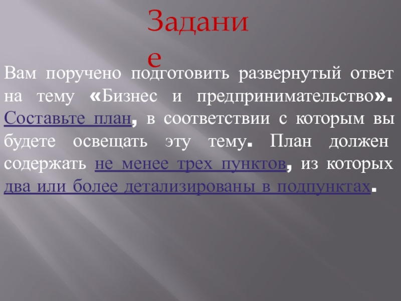 Вам поручено подготовить развернутый ответ на тему «Бизнес и предпринимательство».