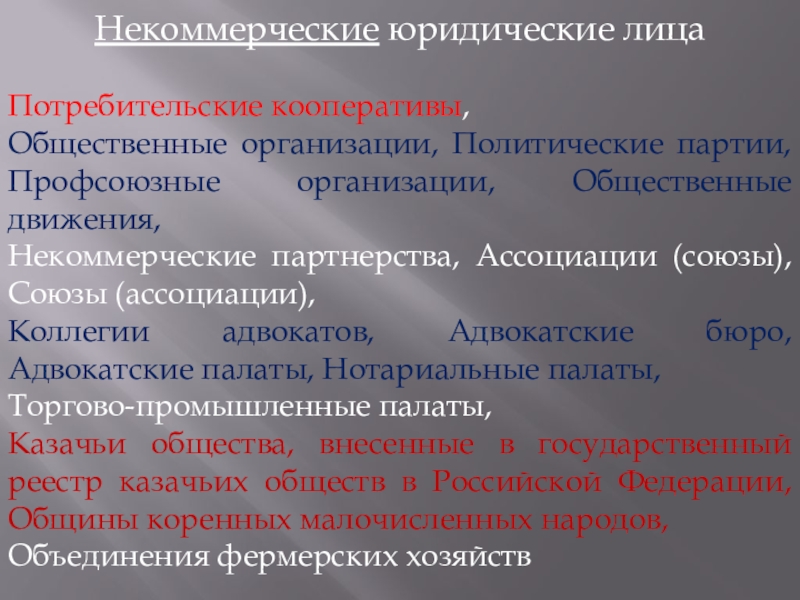 Слайд 11Некоммерческие юридические лица