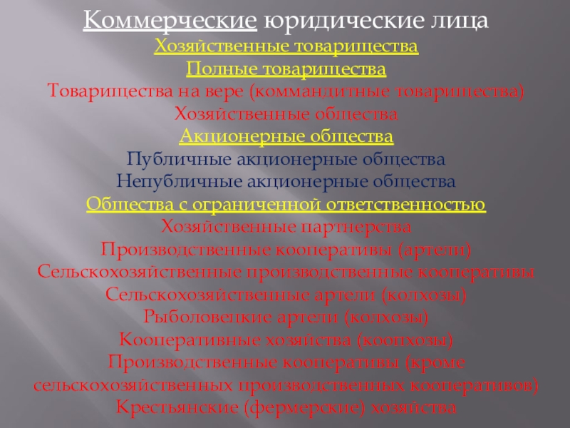 Слайд 10Коммерческие юридические лица
