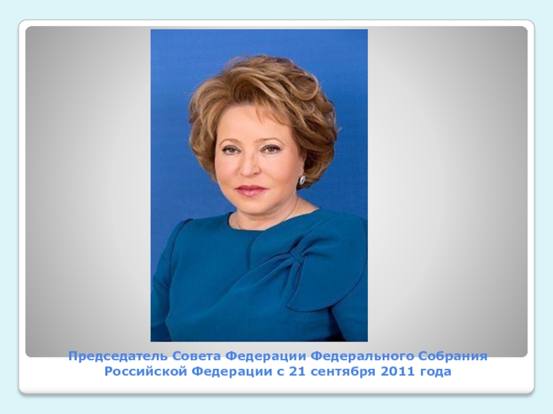 Слайд 9Председатель Совета Федерации Федерального Собрания Российской Федерации с 21 сентября 2011