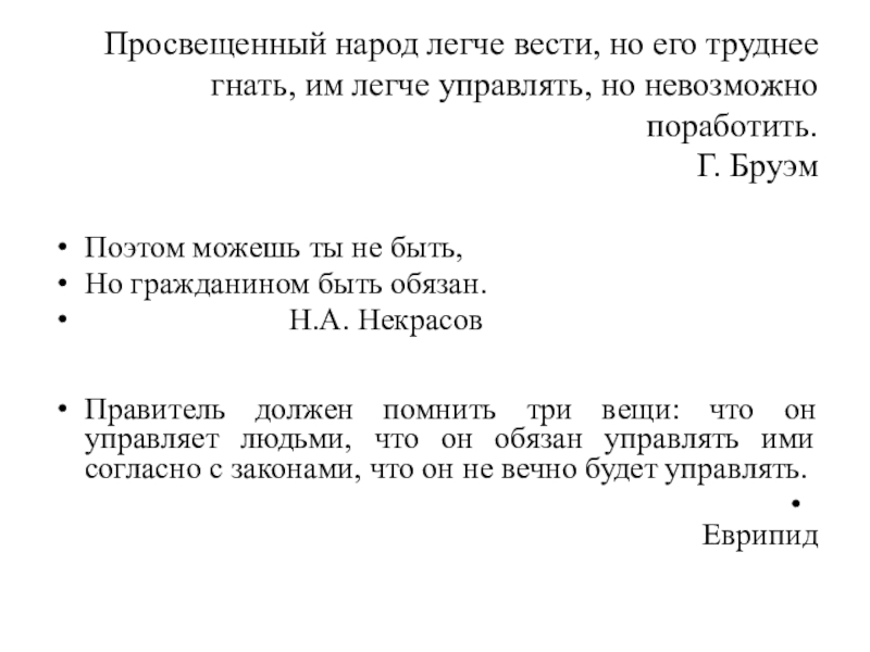 Правитель должен помнить три вещи: что он управляет людьми, что он обязан управлять ими согласно с законами, что он не вечно будет управлять.