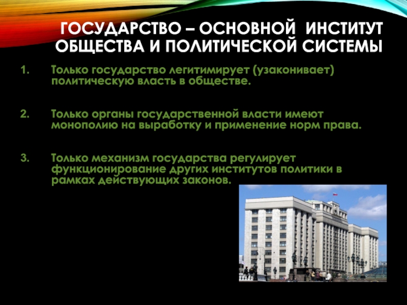 Монархия – (от греч. monos – один и arhe – власть) форма правления, при которой верховная власть полностью или частично сосредоточена в руках одного человека и передается им по наследству.