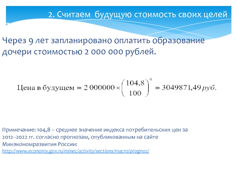 2. Считаем будущую стоимость своих целей