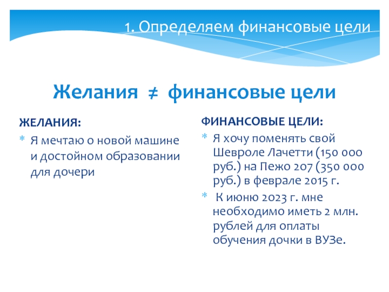 1. Определяем финансовые цели