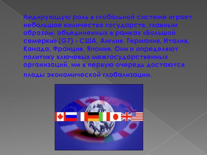 переход значительной части контроля над экономикой от суверенных государств к транснациональным корпорациям и международным организациям, у которых свои и нередко противоположные национальным интересы
