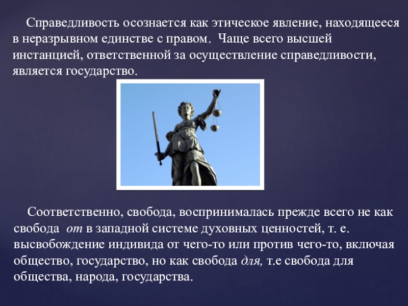 Соответственно, свобода, воспринималась прежде всего не как