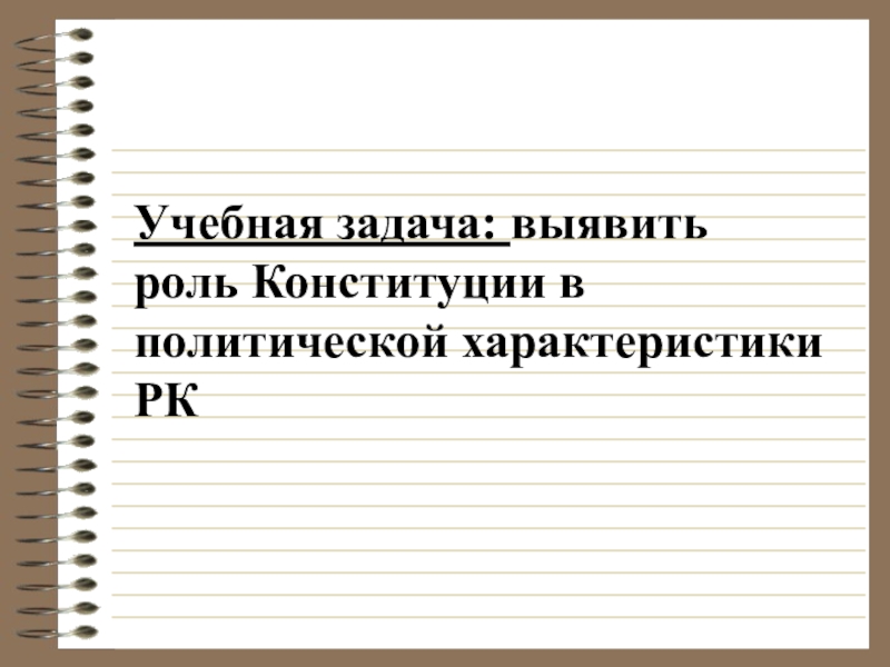 Слайд 3Учебная задача: выявить роль Конституции в политической характеристики РК