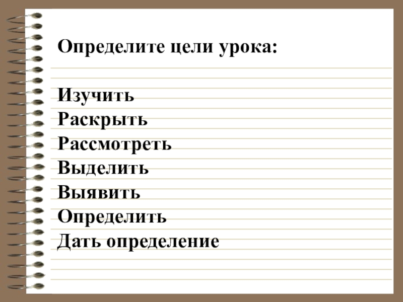 Определите цели урока:Изучить РаскрытьРассмотреть Выделить Выявить Определить Дать определение