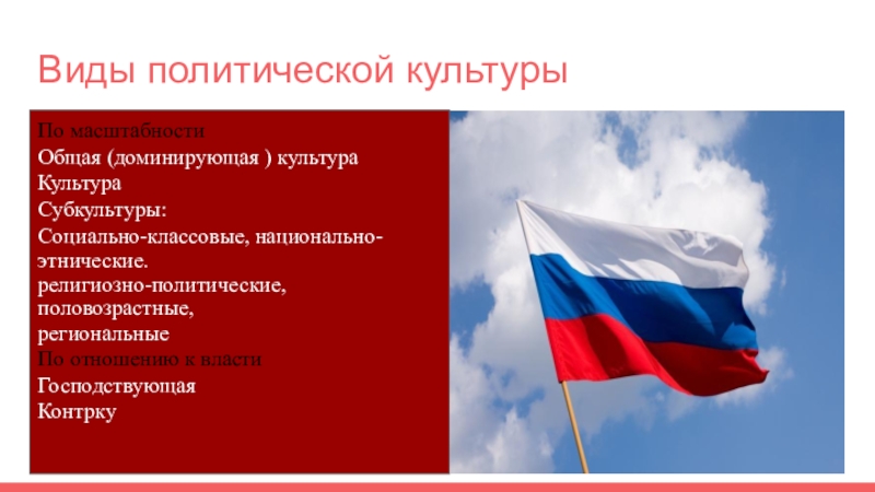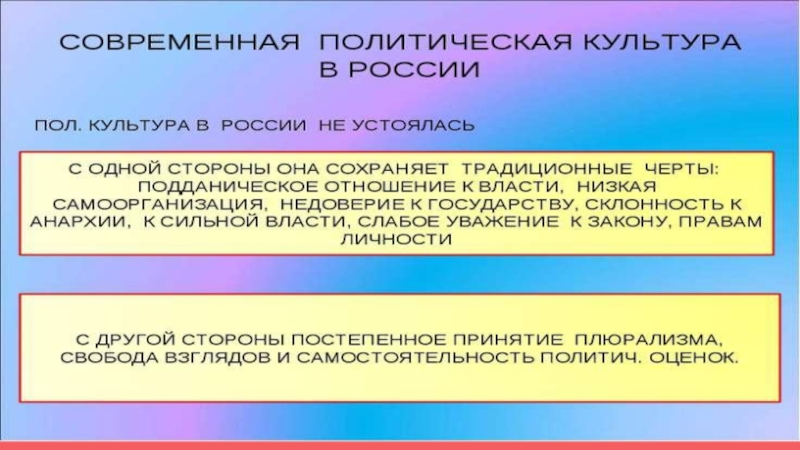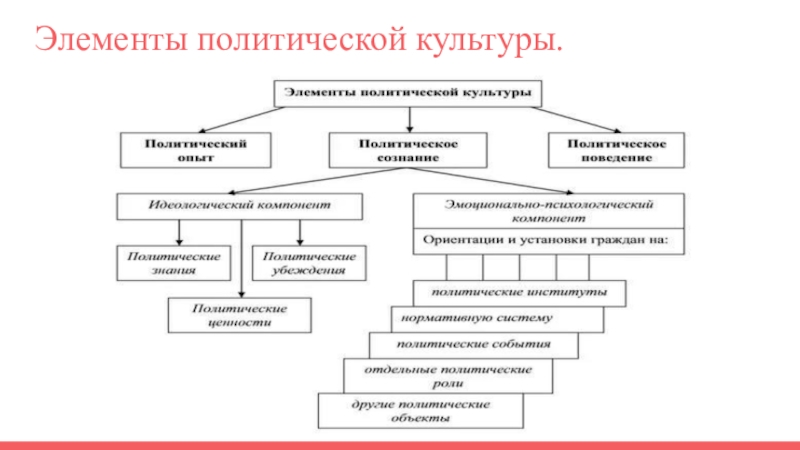 Кроме компонентов, можно выделить также уровни политической культуры: