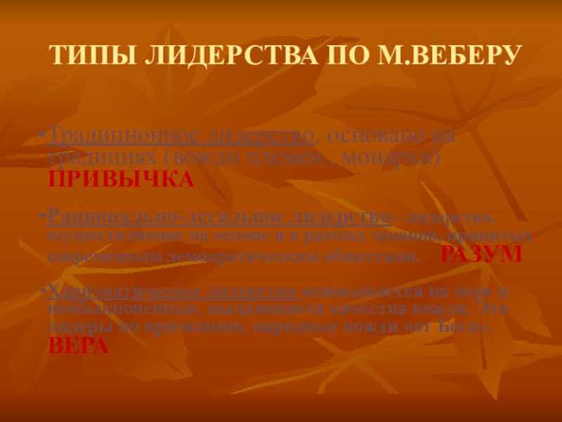 Авторитет (семейные и социальные связи, харизма, экспертные (специальные) знания, вера)