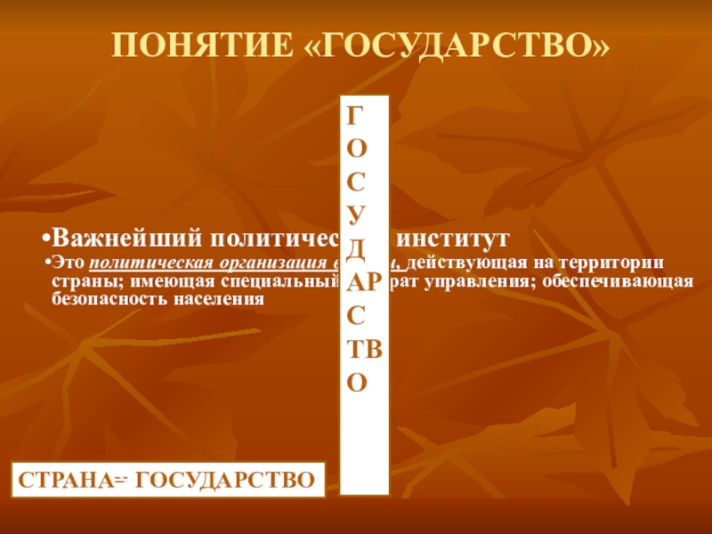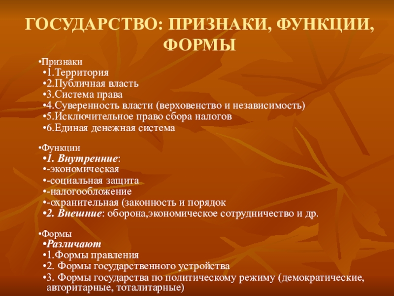 ПРАВОВОЕ ГОСУДАРСТВО- это тип государства деятельность которого реально ограничена правом, имеет место разделение властей (законодательная, исполнительная, судебная), гарантия прав и свобод личности и контроль за властью со стороны общества