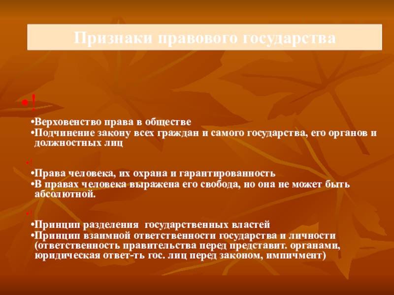 -Правовое государство, основой которого является верховенство закона и гарантия прав и свобод граждан