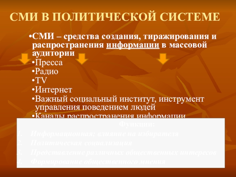 многопартийность, многообразие политических идей, СМИ и т. д.