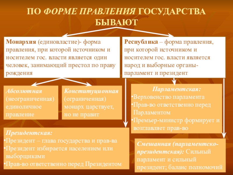 Республика – форма правления, при которой источником и носителем гос. власти является народ и выборные органы- парламент и президент