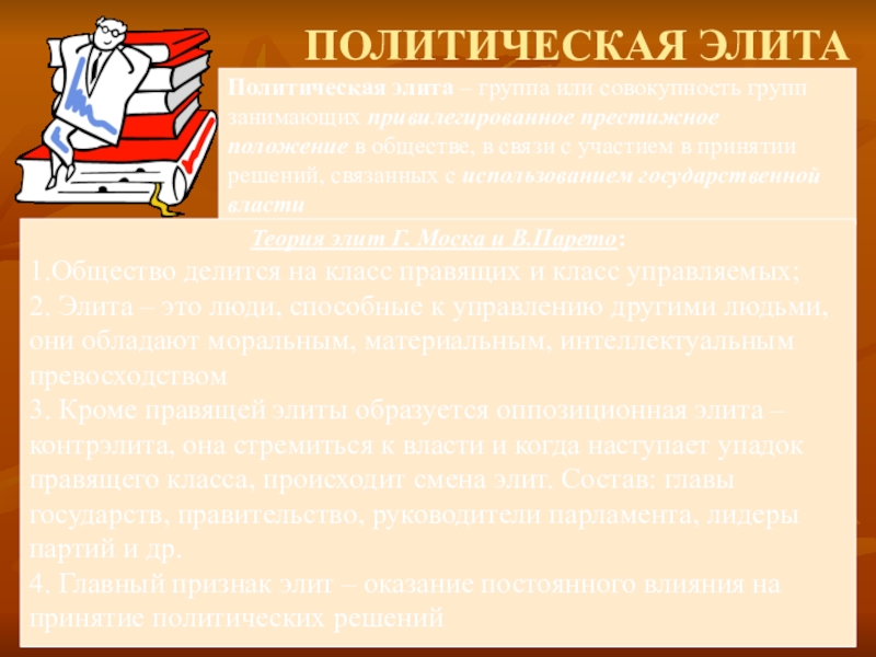 2. Элита – это люди, способные к управлению другими людьми, они обладают моральным, материальным, интеллектуальным превосходством