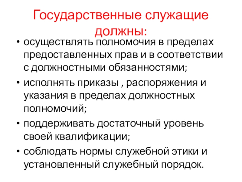 Слайд 3Государственные служащие должны: