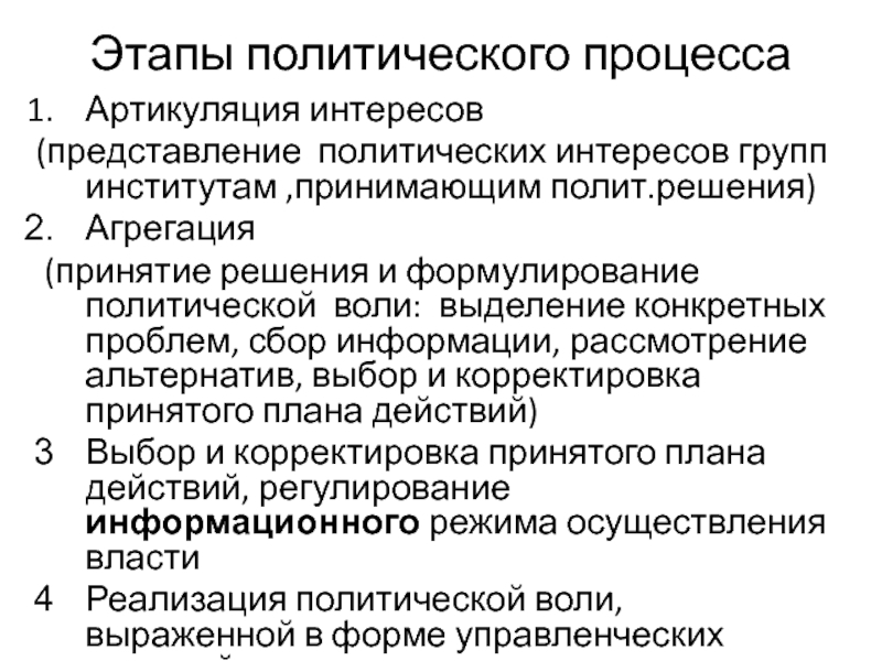 Слайд 5Этапы политического процесса