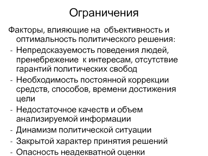 Факторы, влияющие на объективность и оптимальность политического решения: