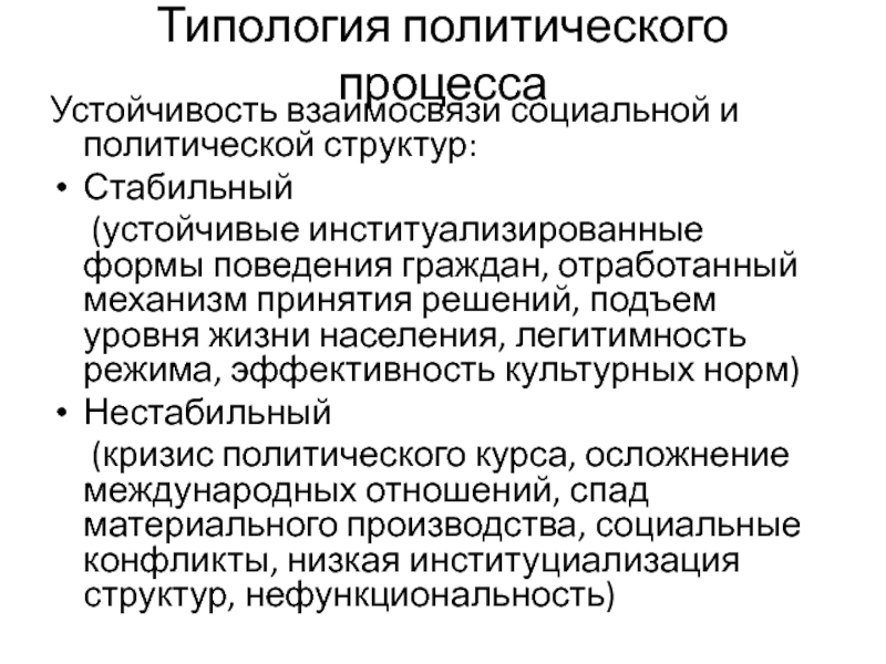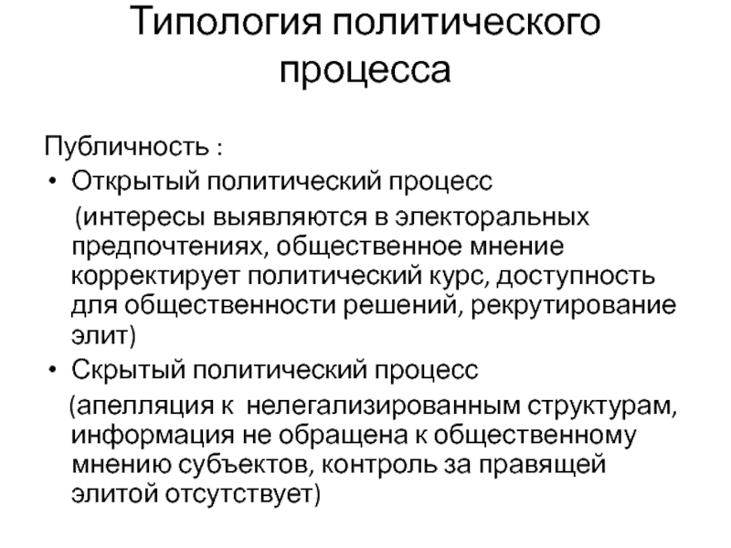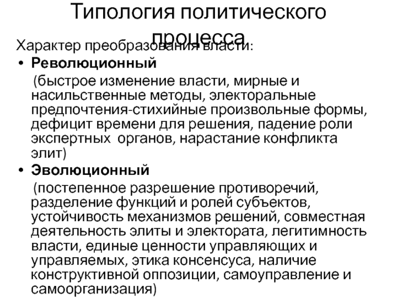 Слайд 10Типология политического процесса
