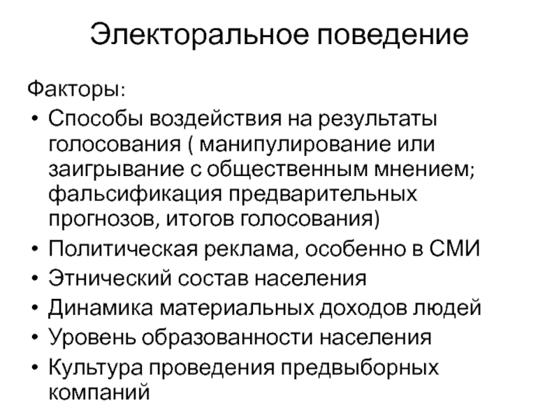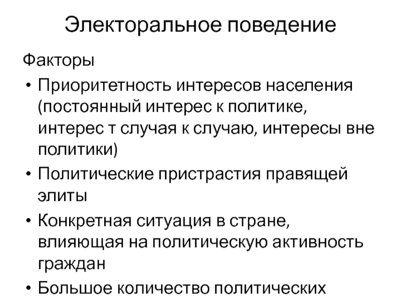 Слайд 20Электоральное поведение