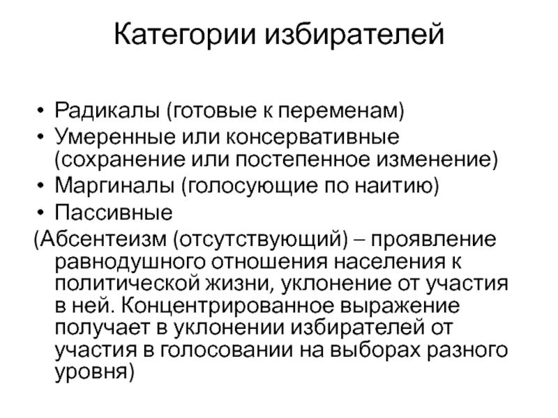 Слайд 21Категории избирателей