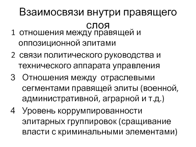 Слайд 4Взаимосвязи внутри правящего слоя