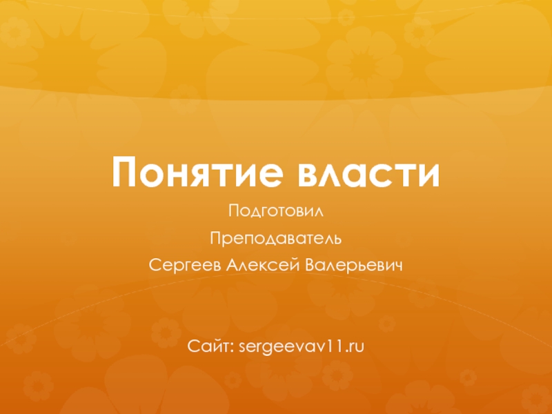 Понятие властиПодготовил ПреподавательСергеев Алексей ВалерьевичСайт: sergeevav11.ru