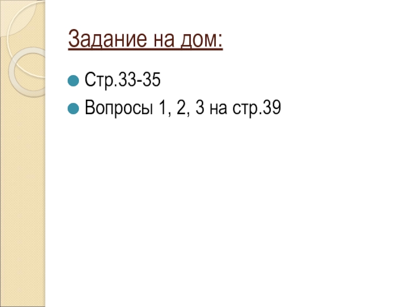 Задание на дом:Стр.33-35Вопросы 1, 2, 3 на стр.39