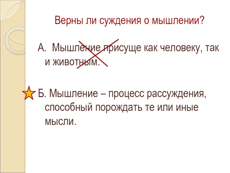 Слайд 15Верны ли суждения о мышлении?