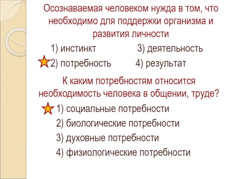 Осознаваемая человеком нужда в том, что необходимо для поддержки организма и развития личности1) инстинкт
