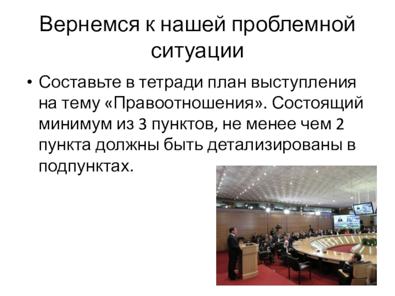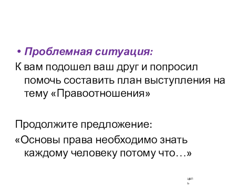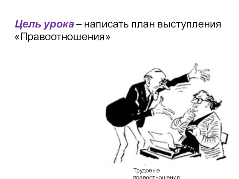 Слайд 7Цель урока – написать план выступления «Правоотношения»